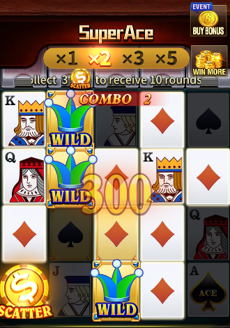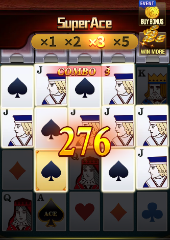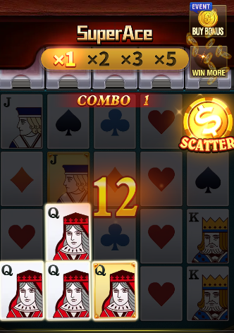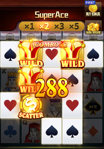 Super Ace video slot featuring 5×4 reels and an impressive 1024 ways to win. In this game, winning combinations are formed from the leftmost reel to the right on adjacent reels. Get ready for a thrilling poker-themed slot adventure!